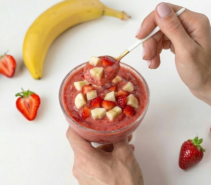 Una alternativa natural y refrescante a los helados industriales, elaborada exclusivamente a base de frutas procesadas en su punto justo de maduración. Esta preparación aprovecha la cremosidad natural de la banana congelada para lograr una textura untuosa sin necesidad de grasas añadidas ni azúcares refinados. Al conservar la fibra de las frutillas y el potasio de la banana, esta opción se convierte en un postre ideal para satisfacer el deseo de algo dulce, aportando antioxidantes y una hidratación óptima con un bajo aporte calórico.
