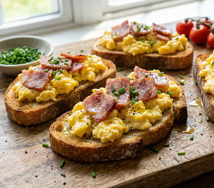 Brusqueta Salada de Huevos Revueltos con Jamón Cocido
