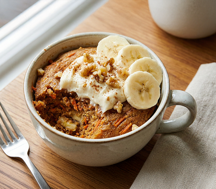 Una propuesta de pastelería funcional diseñada para el ritmo actual, que transforma la tradicional torta de zanahoria en un snack individual de alta densidad nutritiva. Al combinar la dulzura natural de la banana madura con el aporte de betacarotenos de la zanahoria y la fibra de la avena, se logra un bizcocho húmedo y saciante. El uso del yogur natural tanto en la masa como en el topping aporta cremosidad y una dosis extra de proteínas, mientras que las nueces añaden grasas esenciales y una textura crocante, convirtiéndolo en un aliado perfecto para una merienda dulce, sin perder de vista el control de la glucemia y la salud metabólica.
