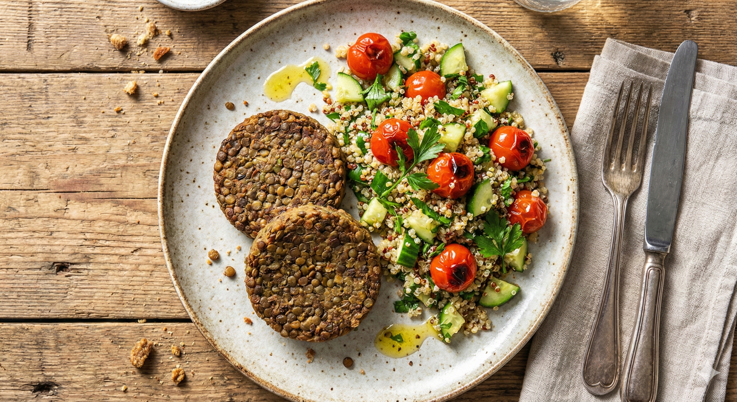 Una propuesta equilibrada que utiliza las lentejas como base proteica, complementada con la fibra de la avena y una guarnición de vegetales que aporta variedad de micronutrientes y fibra, que ayuda a disminuir el índice glucémico de la preparación y dar saciedad. Esta combinación ofrece carbohidratos de absorción lenta y una gran densidad de micronutrientes esenciales, convirtiéndose en una opción ideal para la gestión de la glucemia y la salud cardiovascular.