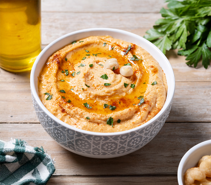 Una versión cálida y especiada del hummus clásico que incorpora la suavidad de la calabaza asada y el carácter aromático de la cúrcuma. Esta combinación crea un perfil de sabor ligeramente dulce y terroso, a la vez que suma fibra y fitonutrientes naturales. Es una opción ideal para un snack funcional que aporta saciedad y ayuda a mantener un control glucémico estable. Bajo en grasas totales: ideal para reemplazar usos de aderezos grasos como mayonesas, para condimentar ensaladas y usar como untable para acompañar vegetales de snack