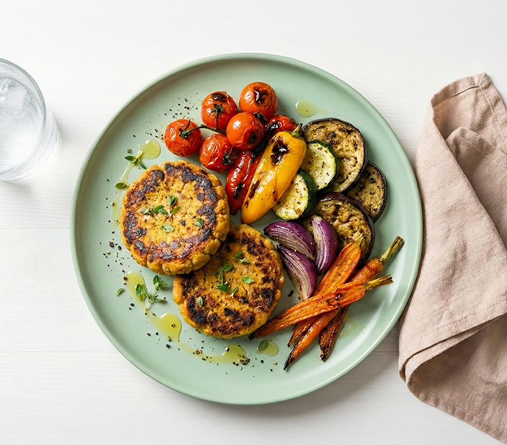 Medallones de Porotos con Wok de Vegetales y Semillas