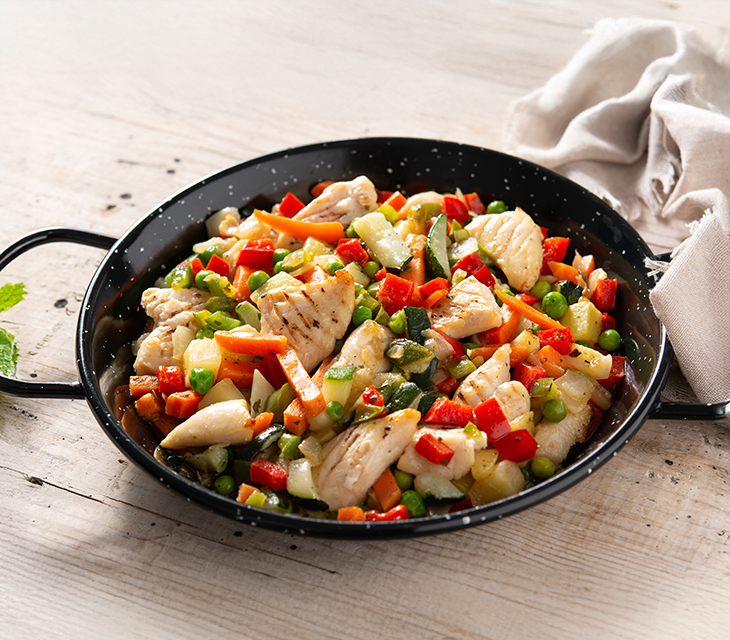 Una propuesta clásica y equilibrada que combina la magrez de la pechuga de pollo con una amplia variedad de vegetales frescos, logrando un plato de gran volumen y saciedad. Gracias a la técnica de salteado rápido, los vegetales conservan sus propiedades antioxidantes y su fibra, mientras que el pollo se mantiene jugoso absorbiendo los aromas del jengibre y el ajo. Es una opción ideal para quienes buscan un almuerzo o cena rico en proteínas de alto valor biológico y bajo impacto glucémico.